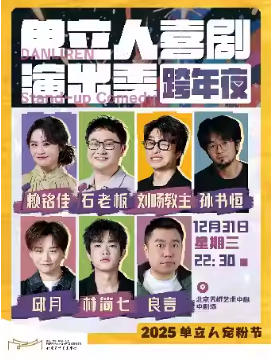 《单立人喜剧演出季-跨年夜》时间:2025.12.31-2026.01.01场馆:北京市 | 天桥艺术中心-中剧场 票价:180/280/380/480/580微信订票:18515362586电话订票:010-66552100,010-66552258